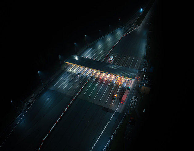 Cámaras LPR, sensores de velocidad y sistemas de pago automatizado.